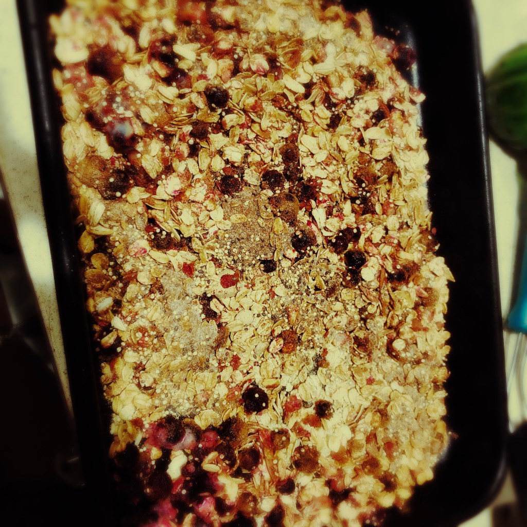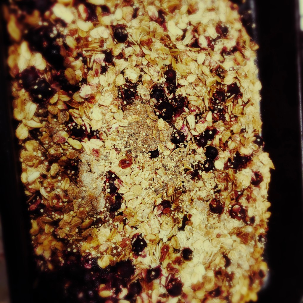 Here is a really great recipe I made this morning. Usually I include nuts and seeds into my granola, but I didn’t have any, so I added quinoa for added crunch. Chia seeds add healthy omega-3 fats, which are essential not only to general health, but also brain health. I also added maca, which is a wonderful superfood which helps increase energy, fertility, improving mood, fighting free radicals, and lowering blood pressure.