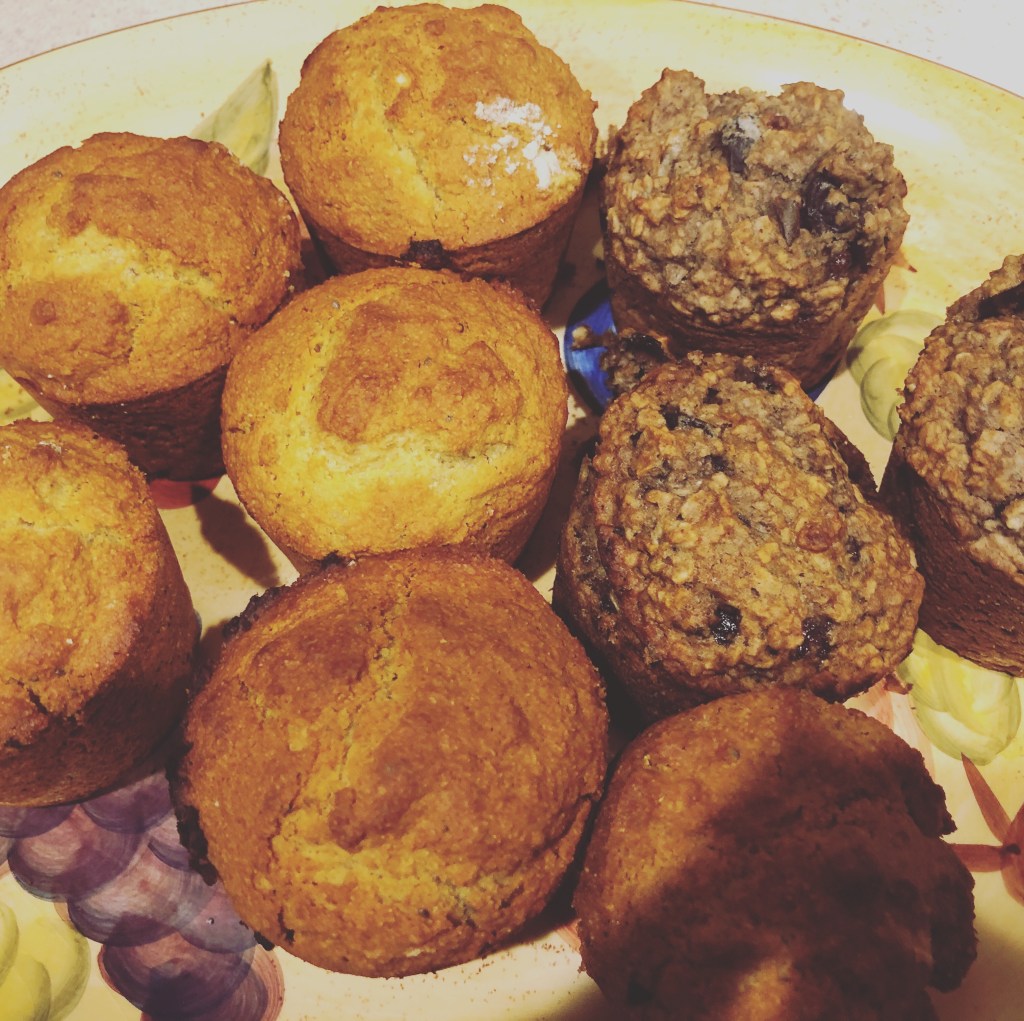 Another perfect breakfast: muffins! These are healthy cranberry muffins and corn muffins. The cranberry muffins are loaded with B complex vitamins, which improve skin appearance and health. Vitamin B1 (thiamin) helps convert carbs to fat for storage of potential energy (great pre-workout snack!). It also improves nerves and muscles. Pantothenic acid (vitamin B5) is called the anti stress vitamin, improving anxiety, supporting adrenal glands and hormones, and the metabolism. It prevents aging and wrinkles. Chia seeds add healthy essential fatty acids (good fat), cranberries provide vitamin C.
